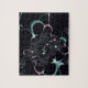 Design de arte fractal e funerária em azul e roxo em fundo preto.
