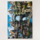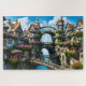 Uma bela e fantástica cidade de casas brancas enfiadas em flores coloridas em um penhasco litorâneo, conectada por pontes, faz um quebra-cabeça de quebra-cabeça divertido.