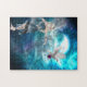 Céu azul etéreo - Lua cheio brilhando através das nuvens - Bela deusa Lua loira, Sky Siren apontando para seu belo carregando de pomba branca um rosa solteiro