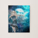 Céu azul etéreo - Lua cheio brilhando através das nuvens - Bela deusa Lua loira, Sky Siren apontando para seu belo carregando de pomba branca um rosa solteiro