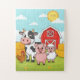 Featuring a friendly cow, pig, sheep, and chicken with a bright red barn and sunny day setting, this 11x14 puzzle turns a love of animals into hands-on learning fun.