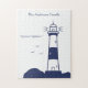 Um quebra-cabeça com uma ilustração de um farol em tons azuis marinhos para se divertir! Pode ser um excelente presente para uma criança, um marinheiro ou um amante dos oceanos e costas marítimas!