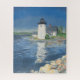 Quebra-cabeça do farol de ponto de haste. Este quebra-cabeça de quebra-cabeça apresenta o Farol de Ponto Grindle brilhando no sol da manhã tardia de um primavera em Islesboro, Maine. A pintura usa uma brilhante paleta de blues, verdes, cinzentos e laranjas para criar uma bela e calma vista da única torre de farol quadrado e da casa de um lançador. O farol de trabalho, erguido em 1874, adverte os marinheiros para que saiam das pedras rochosas entre Gilkey Harbor e West Penobscot Bay. Pedras coloridas laranja, branca e azul brilham no primeiro plano, um testamento da costa áspera da ilha de Maine. Situada à esquerda do farol, um sino de aviso de toque de mão de 1.000 libras reflete o azul profundo da água e as rochas das cinzas ardidas abaixo.