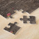 Quebra-cabeça de serra de vaivém com um fazendeiro que veste os calçados de madeira amarelos que inspecionam suas tulipas vermelhas com no fundo um moinho de vento tradicional no primavera na região do bulbo de flor nos Países Baixos.
