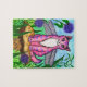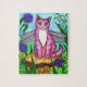 Quebra-cabeça feericamente da arte da fantasia do cogumelo do gato da libélula