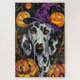 Abraçar o espírito do Dia das Bruxas com esta design encantadora que apresenta um cachorro fofo num chapéu de bruxa rodeado por abóboras entalhadas. Perfeito por adicionar um pouco de charme assustador às suas comemorações festivas.