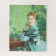 Esta design apresenta uma pintura do artista escocês George Henry (1858-1943), que foi um dos membros mais proeminentes da Escola de Arte de Glasgow. É um retrato de uma bela jovem chamada Felicity. Ela está sentada numa mesa e está vestindo um vestido azul-turquesa. Os cotovelos dela estão descansando na mesa e ela está segurando as mãos juntas ao lado de seu rosto. Felicity está começando com o espectador. Ela é claramente uma mulher elegante. Seu cabelo castanho está elegantemente estirado e ela está vestindo um cachecol sobre seu vestido, que é um pouco mais escuro de turquesa do que o próprio vestido. Há verde no fundo, sugerindo que ela está sentada do lado de fora num jardim. A obra de arte original foi pintada por George Henry em 1916.