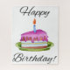 Uma fatia ilustrada de bolo de aniversário com uma vela e o feliz aniversario do texto!