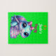 Esta quebra-cabeça decorada com um bolo e uma tartaruga com arco pode ser personalizada com qualquer nome de menina que você gostaria