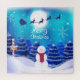Esta design apresenta um fundo de natal do polo norte, com papais noeis, renas e boneco de neve