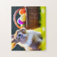 Um coelho felz pascoa com uma cesta de Ovos coloridos.