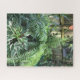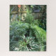 Ferns, hostas, contra um pano de fundo de uma cerca do tempo. Jardinagem no quintal.