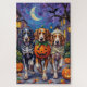 Adoráveis Setores Ingleses vestidos com fantasias lúcidas de Halloween carregar baldes de abóbora enquanto trick-or-tratando sob o céu iluminado pela lua. Este design festivo põe em evidência o casaco, os olhos gentis e a personalidade simpática da raça, que se alimenta da seda, capturando perfeitamente a atmosfera assustadora e divertida da noite de Halloween. Uma bela celebração para amantes de cachorros e fãs do Halloween.