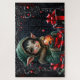 Filha de Elfo Bela em Casaco verde com Enfeites de natal - Design de Férias de Fantasia Mágica. Uma criança bonita de elfo com olhos grandes e ouvidos pontiagudos veste um casaco de capuz verde aparado e segura um Enfeites de natal laranja brilhante. Cercado por caixas de presentes com fitas vermelhas, ramos de pinheiros e bagas, esta cena mágica de feriado parece festiva e mística. A sombria estrutura de ornamentado com vista para uma floresta encantada torna este design perfeito para amantes da fantasia, fãs de Natal e arte mágica de férias.