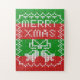 Padrão de tricô no estilo de suéter feio com sinos de jingle e texto de Merry Xmas
