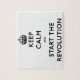 Hora de uma revolução, não diria? Um slogan divertido e oportuno "Fique Calmo e" que diz tudo.