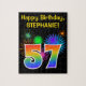 Este design de quebra-cabeça vibrante e divertido apresenta um padrão colorido inspirado em fogos de artifício celebratórios, juntamente com o número "57", tendo um padrão de gradação inspirado no arco-íris multicolor, sobre um fundo de cor preta. Ele também apresenta um nome personalizável e uma mensagem de evento, como uma saudação de aniversário. Um quebra-cabeça como este pode ser uma maneira divertida de enviar uma mensagem de aniversário para reconhecer os cinquenta e sete anos de alguém. [~Z0000329]