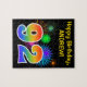 Esta design de quebra-cabeça vibrante e divertida apresenta um padrão colorido inspirado em fogos de artifício comemorativos, juntamente com o número "92" tendo um padrão multicolorido de gradiente, num fundo preto colorido. Ele também apresenta um nome personalizável e uma mensagem de evento, como uma saudação de aniversário. Um quebra-cabeça como este pode ser uma maneira divertida de enviar uma mensagem de saudação para reconhecer o nonagésimo segundo aniversário de alguém. [~Z0000329]