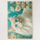 fundo de turquesa antiquadas flores brancas e uma bela chama Lynx point Siamese cat AI Art por minx267