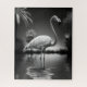 Majestoso flamingo alto em uma piscina com fundo tropical e de verão. A composição lúdica cria um senso de alegria e relaxamento, evocando memórias de dias quentes de verão. O belo e delicado flamingo adiciona um toque de elegância e graça à peça.