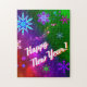 Dê aos amigos e à família uma saudação única de Ano Novo com este quebra-cabeça de 11" x 14" com uma imagem de bonito azul, fúcsia e flocos de neve verdes num fundo arco-íris de luzes de férias. Sentimento de feriado branco. Consulte a coleção inteira de Quebra-cabeça de Ano Novo na categoria HOME na seção HOLIDAYS.