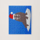 Esta incrível quebra-cabeça de quebra-cabeça mostra uma imagem gráfica de uma linda e pequena Walrus de Natal. A Walrus tem pelo marrom com olhos pretos grandes e presas brancas. Está sentado num icebergue no meio do oceano e vestindo um chapéu festivo vermelho e branco. A morsa está cercada por bonito flocos de neve azuis octogonais que caem ao redor dela.