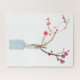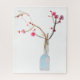 Linda pintura original de cereja rosa colorida floresce na arte dos vasos. Cor vibrante brilhante. Arte fina de aquarela.