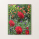 Este quebra-cabeça bonito caracteriza as dálias que criam um motim da cor no jardim