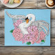 Um cisne branco cercado por flores cor-de-rosa num pano de fundo azul