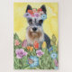 Miniatura Cachorro Schnauzer com flores, qualquer um que ame esta raça de cachorro vai adorar este Quebra-cabeça.