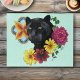 Um retrato de gato Jaguar Negro com azulejo mexicano colorido e flores.
