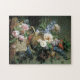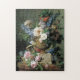 A pintura da flor do vintage "floresce em um vaso do alabastro e em uma cesta com os pássaros aninham-se" por Gerard Van Spaendonck, 1783.