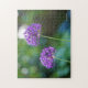 Parte brainteaser, peça montar-você-mesmo, este elegante quebra-cabeça floral é excelente para melhorar a memória muscular. Essas flores florescentes de allium giganteum (cebola gigante) foram fotografadas contra um boque de verde e marrom. Os púrpuros não só acrescentam uma cor e forma vibrantes aos jardins, como também são comestíveis! Baseado na fotografia original de W.H. Sim. Todos os Direitos Reservados. Mais informações em zazzle.com/walkswithnature