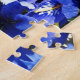 Diversão, fácil e bonito quebra-cabeça com flores azuis de íris no jardim de primavera em Toronto, Canadá.