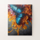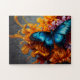 Meia-noite Blue Butterfly Deep Orange Flowers quebra-cabeça. Altura cativante dessas flores laranja profundas Perfeito por adicionar um toque de elegância e tranquilidade à sua coleção, florescências vibrantes contra um fundo elegante. Deixe a beleza calorosa da natureza inspirar sua produtividade.