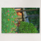 Flores selvagens que crescem em frente a uma cabana vermelha nas matas desta quebra-cabeça. Quanto tempo levará para colocar tudo junto?