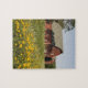 O ruivo Red Barn e o Quebra-cabeça Amarelo de Flores Selvagens fazem uma ideia de presente excelente para um amante de celeiro. Este tema do país quebra-cabeça apresenta uma fotografia cênica de fazenda rural do meio-oeste de um velho celeiro vermelho-curado em um dia azul-celeste com flores amarelas no primeiro plano.