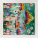 Uma floresta vibrante de cogumelos brancos e multicoloridos se ergue contra um pano de fundo verde girando. A cena é pontilhada por fungos de vários tamanhos, cada um amontoado com alças e cercado por delicados elementos florais.