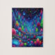Mergulhe numa paisagem de sonho mesmerizante com este design de floresta de fantasia vibrante. Queimada com cores neonatais e detalhes surreais, essa outra cena do mundo apresenta árvores brilhantes, plantas luminosas e um céu noturno cósmico que captura a imaginação. Perfeito para adicionar um toque ousado e psicodélico ao seu espaço ou estilo, este trabalho de arte traz cor, magia e imagens impressionantes.