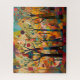 Uma pintura colorida de árvores e flores, no estilo de paisagens brancas, criaturas fantásticas e imaginativas, formas distintas, madeira, campos coloridos musicais, com grande formato de canvas.