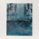 Winter Woods I de Chariklia Zarris. Apresenta árvores escuras em tons azuis profundos num estilo semelhante a aquarela.