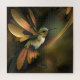 Uma representação digital futurista de um beija-flor em ouro mole, verde e laranja claro com asas e penas de cauda fantasiosas. Pássaro fantasma. por Kat McCarthy