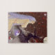 Arte original. Uma senhora com cabelo roxo, meteoros caindo do céu, a lua parece ser mantida por uma árvore muito forte e uma varinha mágica é protegida a dentro de um globo. quebra-cabeça de 8" x 10" com caixa de presentes, 110 peças. Estão também disponíveis peças maiores. ***Você pode ver uma foto deste produto na seção de mídia na primeira página.