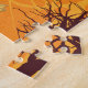 Um por do sol abstraído bonito da queda, com as grandes folhas outono-coloridas contra um fundo alaranjado e as folhas menores que flutuam no vento. As folhas são rendidas em um estilo esboçado. O esquema de cores é alaranjado, amarelo, verde, e marrom. Um presente agradável para a família ou os amigos. © Copyright 2015 P.D., planeta do feriado. Todos os direitos reservados.
