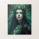 Discover the ethereal beauty of the "Forest Queen Guardian" jigsaw puzzle by ArtMorphStudio. This captivating high-fantasy portrait features a majestic nature spirit with long, flowing dark hair and luminous green eyes. She is crowned with an intricate diadem of emerald gemstones and entwined branches, wearing ornate dark armor adorned with glowing green jewels. Set against a mystical, glowing forest background, this design perfectly captures the strength and grace of an elven protector. A rewarding and atmospheric puzzle for any fantasy art enthusiast.