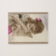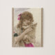 Linda jovem com seu pequeno cachorro branco em um antigo cartão postal francês de fotos reais para a Rua. Dia de Catherine. Eu tenho o costume de restaurar a imagem.