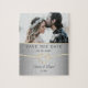 Casamento simples, moderno e elegante de cinza prateada salve a data quebra-cabeça com corda de ouro romântica e foto. Anúncio de casamento inesquecível! Presente perfeito para a pequena coorte de seus queridos e especiais visitantes. Sua convidada se sentirá entusiasmada quando você enviar a eles este favor único, adorável e memorável que tem algum significado pessoal para eles e mantém a memória eterna depois do dia do casamento!