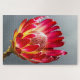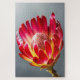 Uma bela foto de uma flor de proteína solteiro com suas pétalas abertas inclinadas para frente na diagonal da esquerda para a direita. É enquadrado por uma cinza de fundo média que desaparece para uma cinza de luz à direita devido à fonte de luz solar.