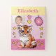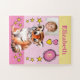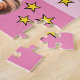 30 peças de um quebra-cabeça para crianças. Com um tigre giro, com estrelas e corações amorosos. Adicione um nome, inicial e uma foto. Esquema de cores: rosa e amarelo Ideia de presente para crianças.