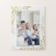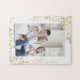 Esta quebra-cabeça de serra de na moda é decorada com aquarela eucalipto, folhagem e bagas em ouro. Facilmente personalizável com sua foto e seu nome. Porque nós criamos nosso próprio trabalho de arte você não encontrará essa imagem exata de outros designers. Original Watercolor © Michele Davies.